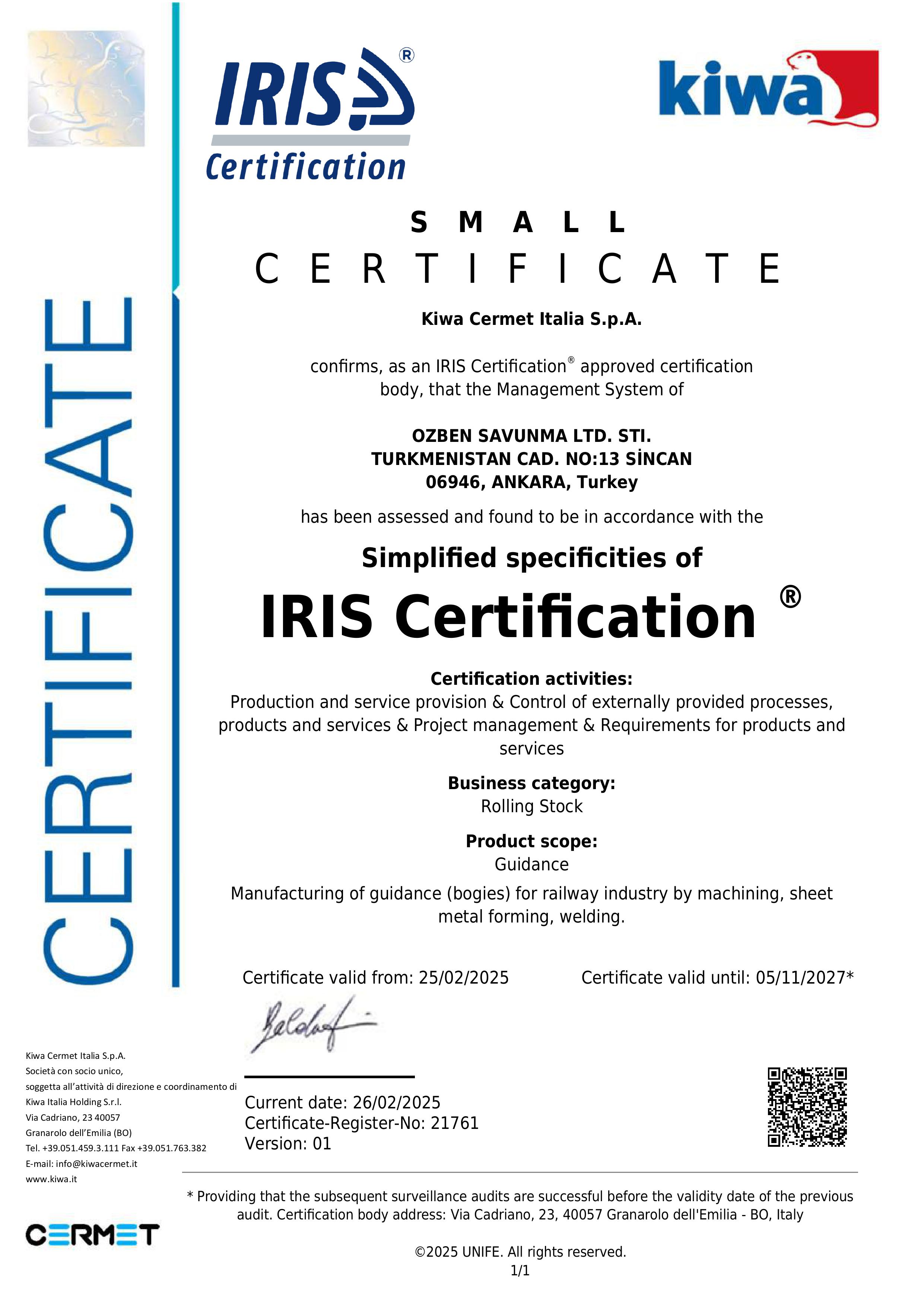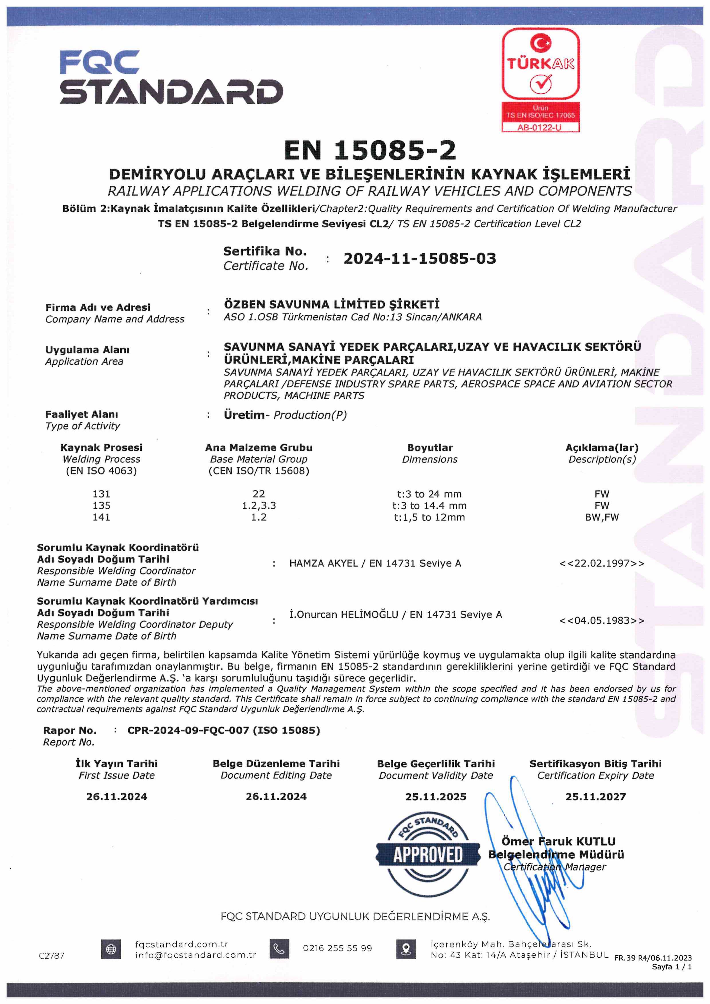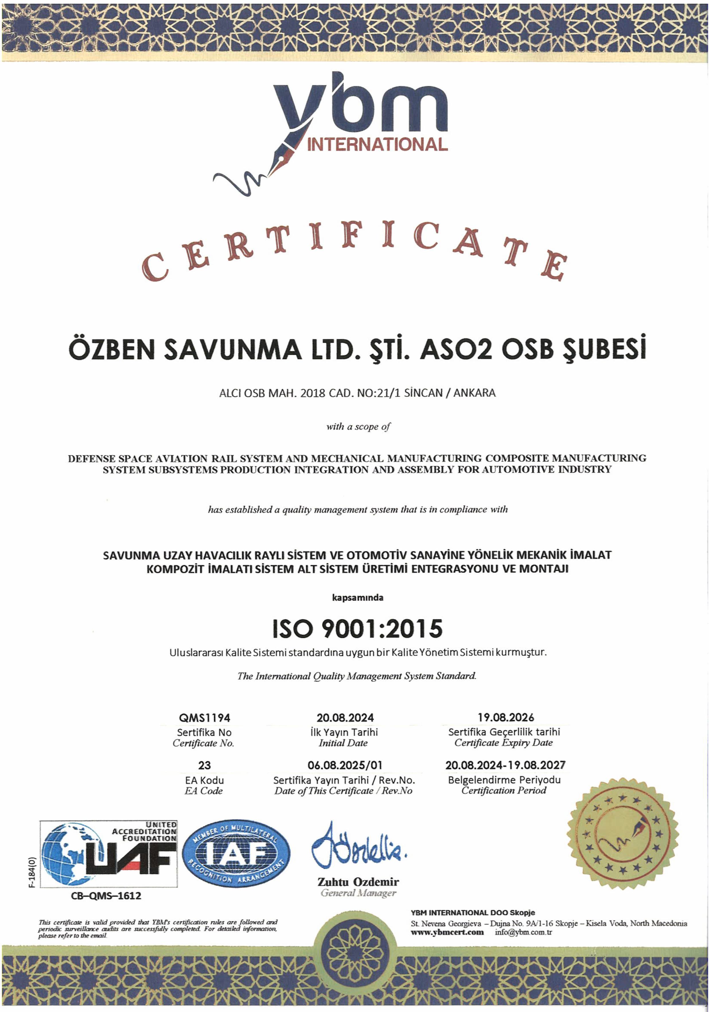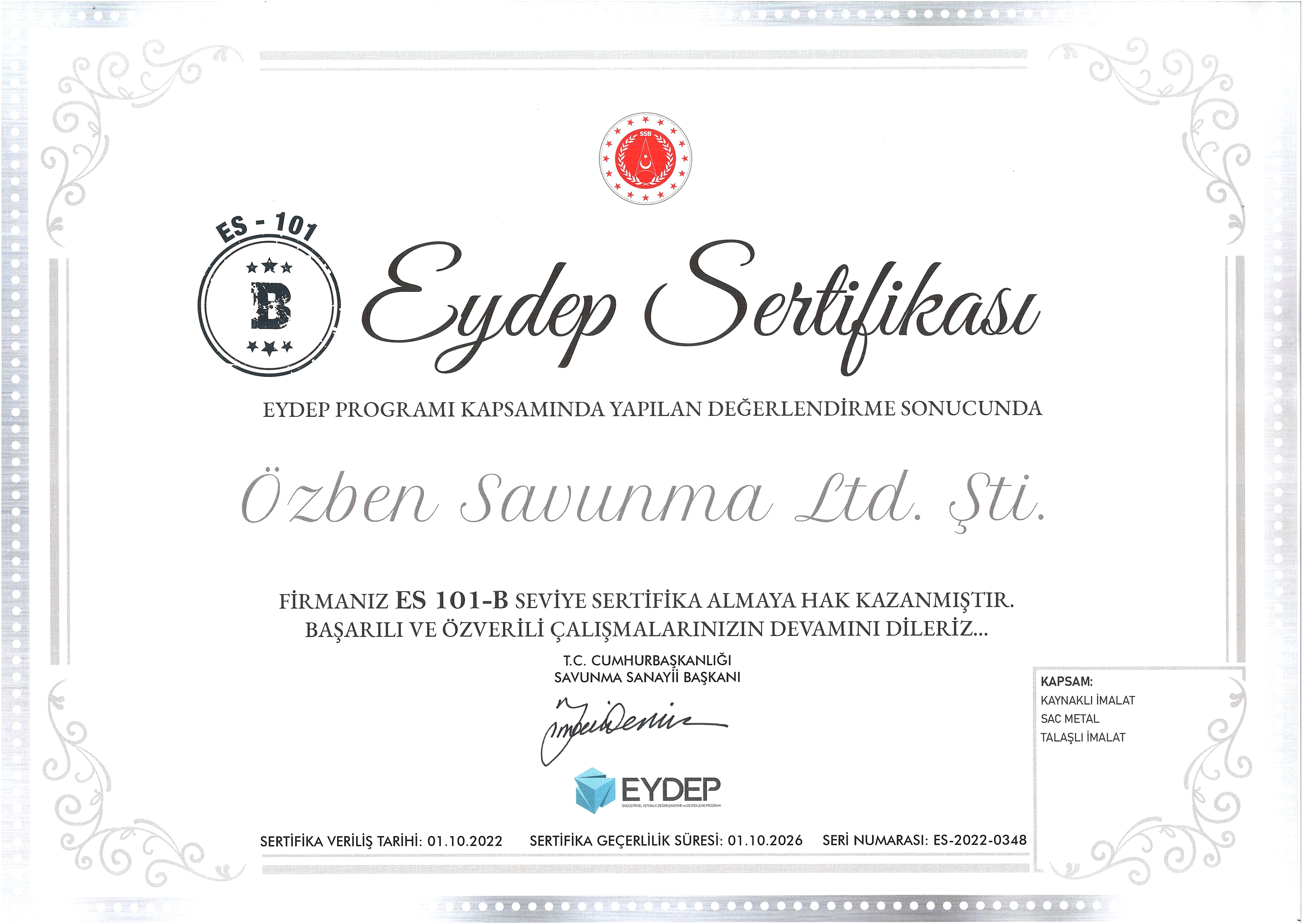 ÖZBEN SAVUNMA, ana yüklenicilerin, proje yönetimi, sistem mühendisliği, tedarik yönetimi ve sistem entegrasyon süreçlerini tek noktadan sağlayabileceği bir çözüm ortağı olarak hizmet vermektedir. ÖZBEN SAVUNMA 1994 yılında Ankara’da kurulmuş olup kuruluşundan günümüze TSKGV Şirketlerinin onaylı tedarikçisi olarak faaliyet göstermektedir. Savunma Sanayi Başkanlığı’na ait birçok projede alt yüklenici olarak görev almaktadır. Toplam 26.000 m² üretim tesisi ve alanında tecrübeli 150 çalışan kadrosu ile savunma sanayi yatırımlarına üretim altyapısı, ürün ve mühendislik hizmetleri sunan paydaşlar arasında yer almaktadır. Faaliyetlerden elde edilen tüm kazanımların sürekli olarak, ileri teknoloji makine ekipman, kalite yönetimi, özel süreç sertifikasyonları, Ar-Ge, Ür-Ge ve Millileştirme yatırımlarına aktarılması stratejisi ile, çalışma alanlarını genişleterek, sektör ihtiyaçlarının milli kaynaklar ile karşılanması noktasında katkısını arttırmaktadır. Hali hazırda Şelter üretimi, Sistem Entegrasyonu, Radom Entegrasyonu, Dalga Kılavuzu üretimi, Kompozit üretim ve Mekanik üretim alanlarında faaliyet gösterilmektedir. Şelter sistemleri, mobilite senaryosu bulunan askeri ve sivil pek çok uygulamada nitelikli bir korunak yapısı olarak tercih edilmektedir. Elektronik Harp ve Radar Sistemlerinde, İnsansız Hava Platformlarında ve Haberleşme Sistemlerinde Kontrol merkezi olarak yoğun kullanılmaktadır. ÖZBEN SAVUNMA, standart veya özel ölçülerde, ihtiyaç duyulan alt sistem bileşenleri ile donatılmış, çeşitli konfigürasyonlara sahip, şelter tasarımı, üretimi ve entegrasyonu gerçekleştirmektedir. Sistem geliştirme sürecinin yanı sıra ana yüklenicilerin proje yönetim süreçlerini de büyük ölçüde devralarak anahtar teslim çözümler ortaya koymaktadır.