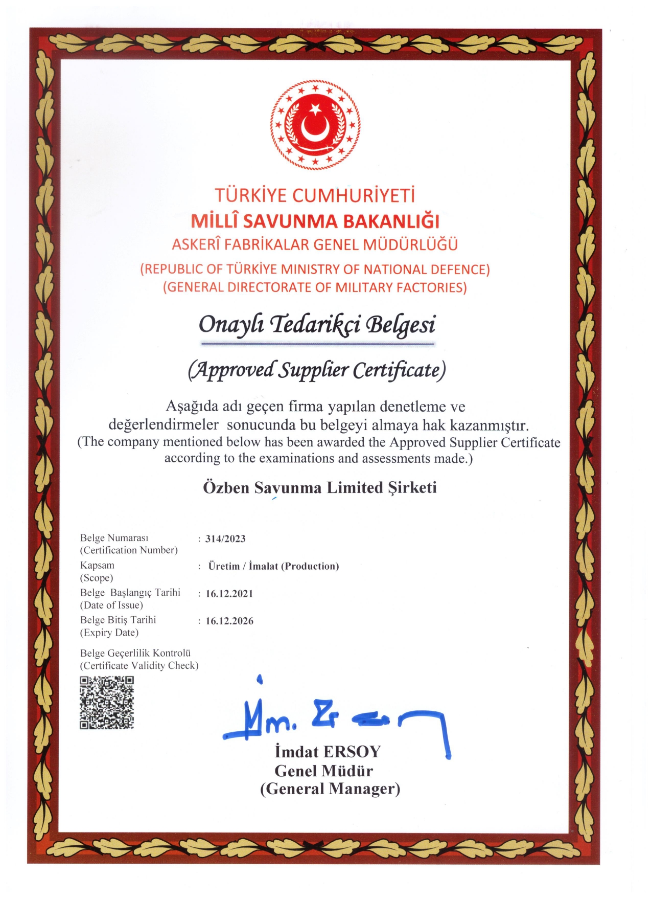 Yüksek kalite standartlarında üretimimiz ile ulusal ve uluslararası güvenlik güçlerinin ihtiyaçlarını karşılamak ve güçlü altyapımızla zorlu operasyonel gereksinimlere uygun, güvenilir çözümler geliştirmektir.