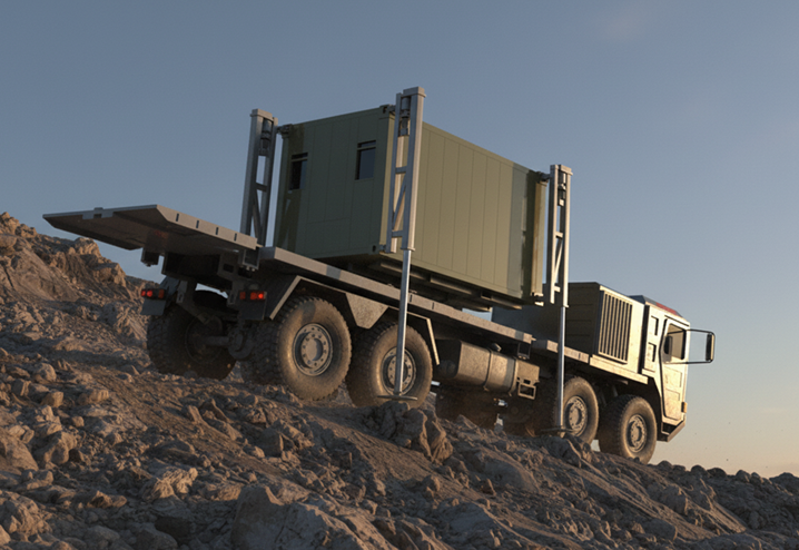 Otomatik Şelter Seviyeleme Sistemi, zorlu arazi koşullarında konuşlandırılan şelterlerin kısa sürede stabil ve yatay bir platforma getirilmesini sağlayan askerî sınıf bir çözümdür. Kapalı çevrim eğim algılama, gelişmiş sensörler ve dayanıklı aktüasyon teknolojisi sayesinde sistem, şelter eğimini otomatik olarak algılar ve hızlı bir şekilde düzeltir. Yüksek güvenilirlik ve hassasiyet için tasarlanan sistem, gerektiğinde harici el kumandası ile manuel ince ayar imkânı sunar. Mobil komuta merkezleri ve kritik saha uygulamaları için hızlı ve güvenilir bir seviyeleme çözümü sağlar.